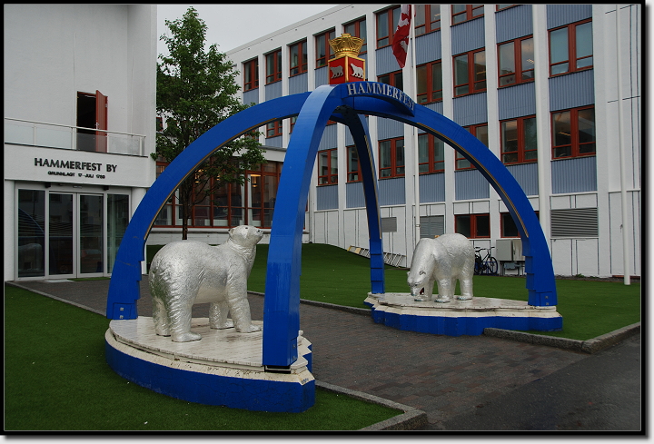 Anschließend spazierten wir an ein paar Geschäften und dem Hafen vorbei zur Touristeninfo. Dort gab es natürlich jede Menge Infomaterial und Souvenirs. Aber auch eine kostenlose interessante Ausstellung über die Stadt und die Eisbären. Und für 24,- € (180 Kronen) bin ich jetzt stolzes Ehrenmitglied im Eisbärenclub. Ein kleiner Geldbetrag wird an den WWF gespendet und ich bekam neben einem Zertifikat, einen Aufkleber, einen Ansteckpin, eine Broschüre und einen Mitgliedsausweis.