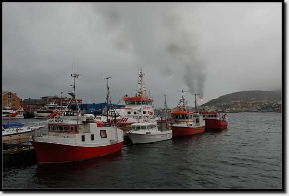 Der Himmel wollte und wollte einfach nicht aufreißen. Als wir oberhalb von Hammerfest ankamen, bot sich uns ein eher trister Anblick. Die nördlichste Stadt Europas wirkte wenig einladend.
