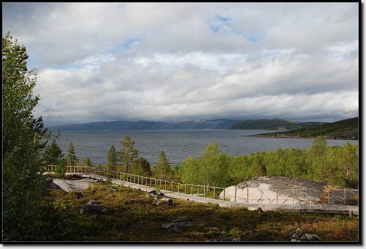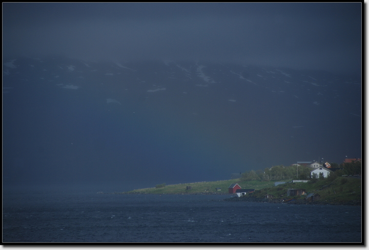 Viel zu spät, erst gegen 19:00 Uhr, machten wir uns auf. Die E6 führte uns wunderbar am Fjord entlang und ich hätte schon wieder alle paar Kilometer ein Bild machen können. Auch wenn sich der Himmel wieder zugezogen hatte, sah alles endlich richtig norwegisch aus.