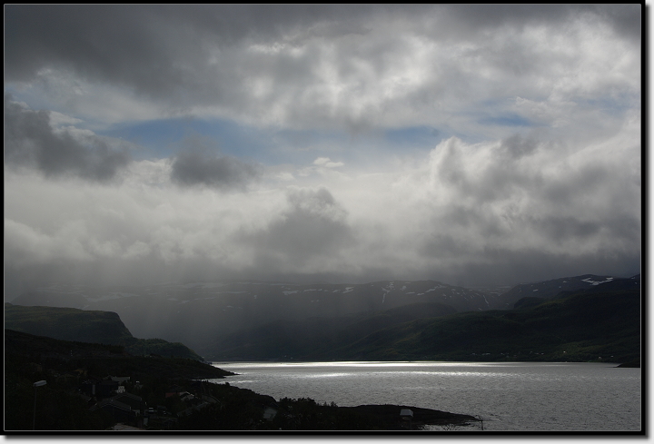 Um 15:15 Uhr machten wir uns auf den Weg nach Alta. Aus der dicken Wolkendecke schien plötzlich für wenige Minuten die Sonne. War sie es wirklich? Schnell machte ich ein paar Bilder, nur als Beweis.