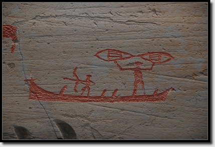 Das Museum bietet eine interessante Ausstellung im Gebäude. Wir schauten uns die Filmbeiträge und die tollen Ausstellungsstücke an. Anschließend spazierten wir im Freiluftbereich über Holzstege, neben denen Schachtelhalme wuchsen, zu den Zeichnungen. Diese liegen zwischen 8 und 26 Metern über dem Meeresspiegel. Da man damals üblicherweise nur in Felsen geritzt hat, die der Strandlinie am nächsten waren, liegen die ältesten Zeichnungen am weitesten vom Wasser entfernt.