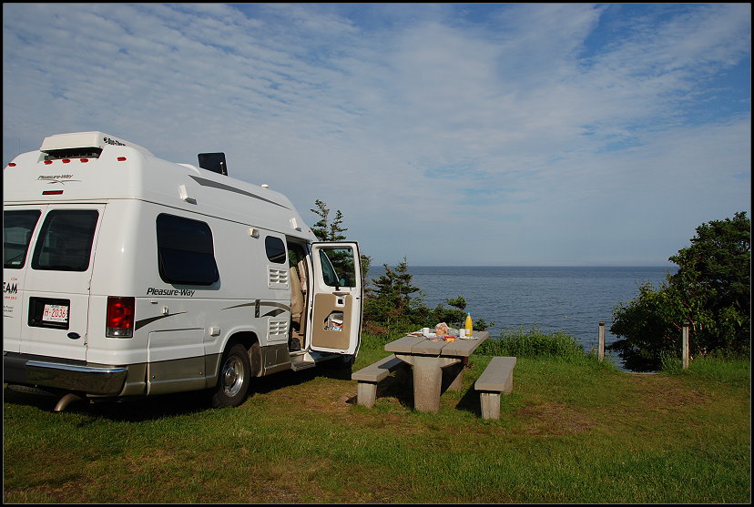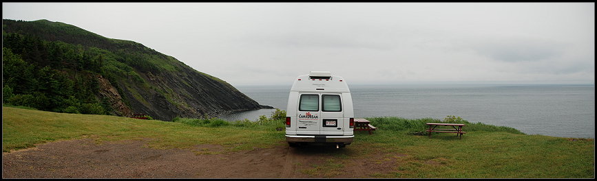 Noch voll im Geschwindigkeitsrausch fahren wir zum CP nach Meat Cove. Der Platz liegt hoch über dem Meer und man hat einen tollen Ausblick auf die Bucht.