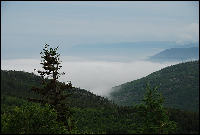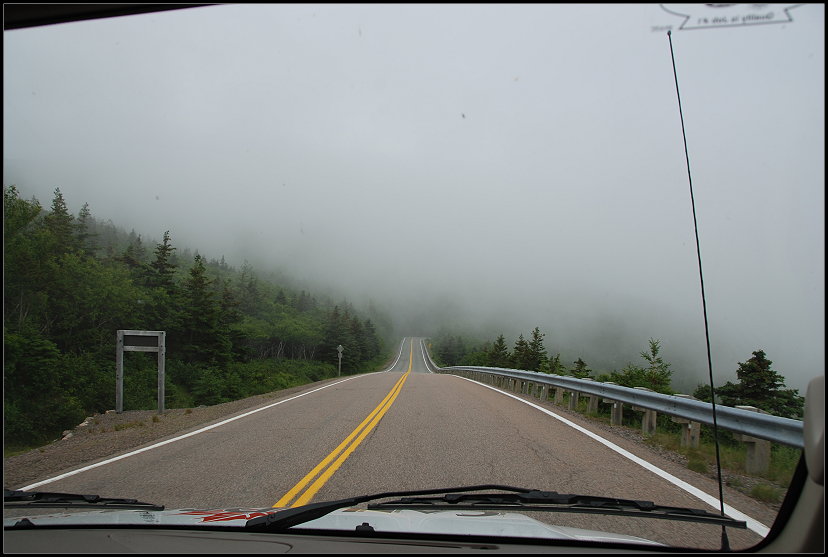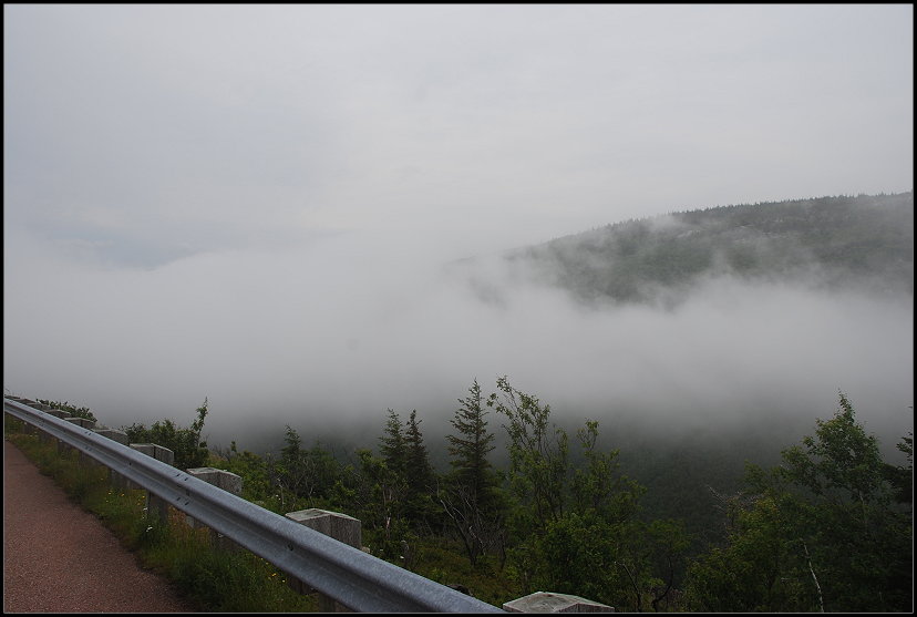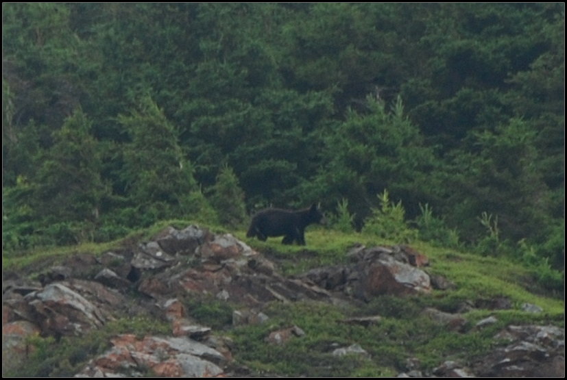 Über den Cabot Trail geht es Richtung Nordspitze. Auf dem ersten Parkplatz halten wir schon wieder an, denn ich muss die Küste auch mit Nebel fotografieren. Plötzlich ruft ein Mann neben uns „Da sind Bären!“ Und tatsächlich sehen wir hoch oben im Berg zwei Schwarzbären. Cool!!