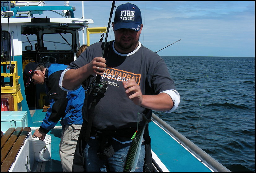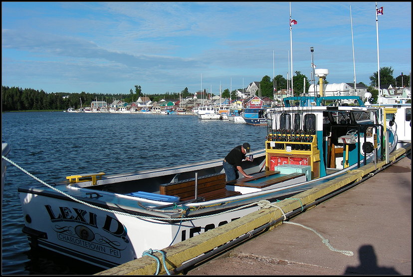 Heute stehen wir mal richtig früh auf. Kurz vor 6:00 Uhr schellt der Wecker. Geheimnisvoll locke ich meinen Mann nach North Rustico. Schon vor Monaten habe ich für heute übers Internet heimlich eine Angeltour gebucht.