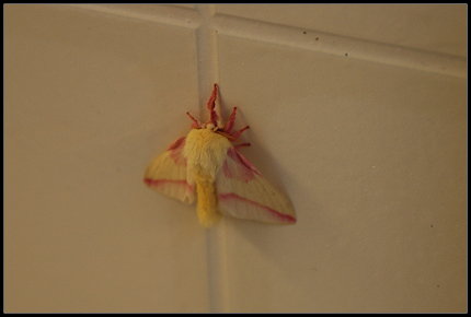 Irgendwie will mein Wasser aber nicht warm werden und so dusche ich kalt! Das kostet Überwindung. „Das Wasser ist heiß, das Wasser ist heiß!“ Man muss sich das nur lange genug einreden… Als ich es schon bald wirklich glaube, dreh ich noch einmal an den Knöpfen rum und es wird ….. warm! Die Armatur ist falsch herum angebracht! Bin ich blöd…. An den Waschbecken entdecke ich dann noch einen Riesenfalter und auf der Wand daneben noch einen in pink-weiß. Was es alles gibt!
