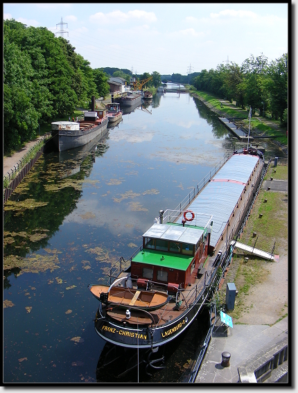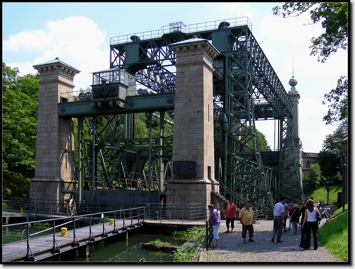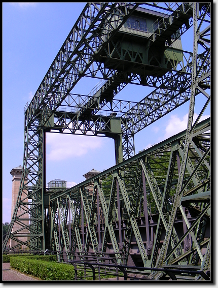 Das alte Schiffshebewerk am Dortmund-Ems-Kanal wurde 1899 durch Kaiser Wilhelm II. eingeweiht. Seit 1969 steht der gigantische Aufzug, der die Schiffe eine Höhe von 14 Metern überwinden ließ, leider still.