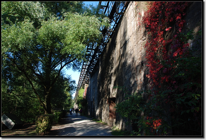Rund um das stillgelegte Eisen-Hüttenwerk in Duisburg-Meiderich befindet sich der ca. 200 Hektar große Landschaftspark. Das Gelände ist vielseitig, rund um die Uhr kostenlos geöffnet und hat für jeden Besucher etwas zu bieten. Zum Beispiel ist der alte Gasometer mit 20.000 Kubikmeter Wasser gefüllt und mit Taucherbrille und Flasche kann man dort auf Entdeckungstour gehen. In der ausgedienten Gießhalle befindet sich ein Hochseilparcours und in einem Teil der Erzbunkeranlage errichtete der Deutsche Alpinverein einen Klettergarten. Bei Tag und Nacht werden interessante Führungen übers Gelände angeboten und vom Hochofen 5 hat man einen tollen Blick über die Anlage und die Stadt Duisburg. Durch eine farbige Beleuchtung wird das Gelände nachts toll in Szene gesetzt. Bilder von unserem nächtlichen Streifzug könnt ihr hier auf einer extra Seite sehen. |