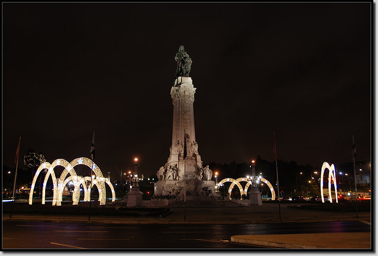 Nach ca. 10 Minuten ging das Feuerwerk mit ein paar letzten lauten Knallern zu Ende. In Ruhe tranken wir noch unsere Dosen aus und gingen dann langsam mit dem Strom durch die Straßen zurück zur Metro. Boah, jetzt war es dort aber mal so richtig voll. Kurzfristig ging in dem Gewirr gar nichts mehr und ein paar Sekunden lang dachte ich an eine Massenpanik. Dann löste sich der Knoten aber zum Glück auf und wir wurden durch den prächtigen Triumphbogen Richtung Rua Augusta geschoben.