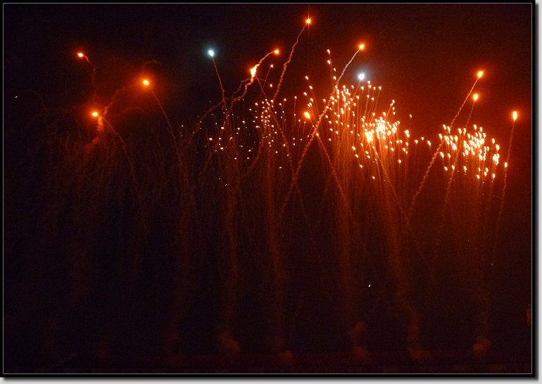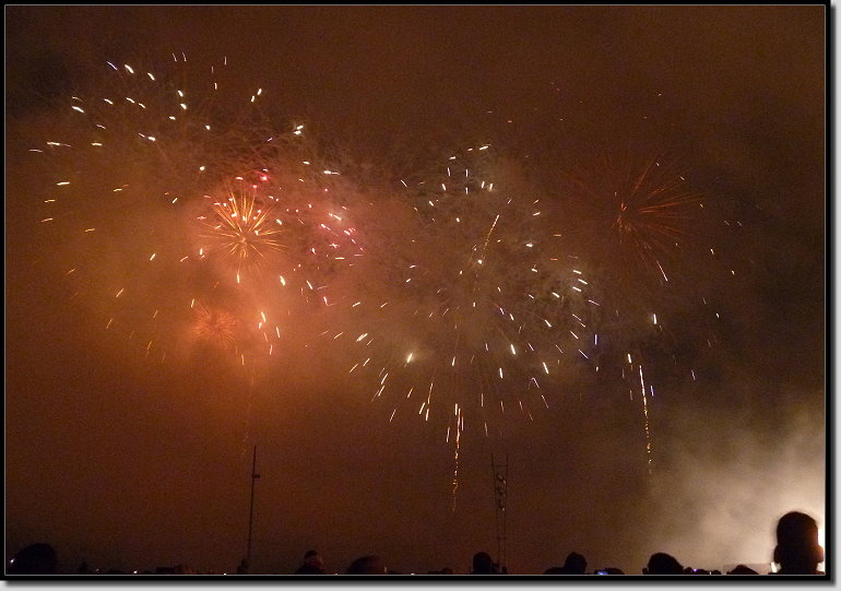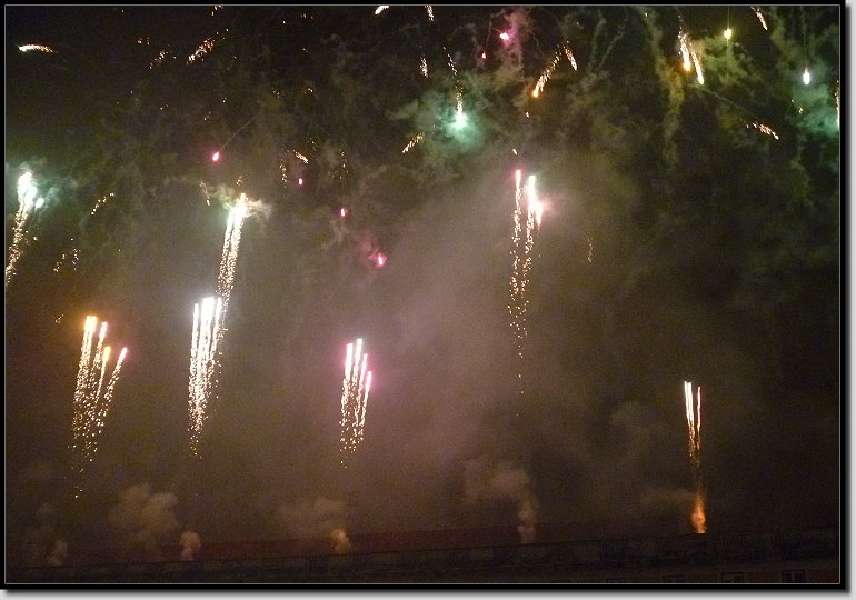 Der Platz hüllte sich langsam so in die Rauchschwaden ein, dass wir die Bauten um uns herum nicht mehr sehen konnten. Egal, wichtig war uns in diesem Moment eh nur das Spektakel am Himmel!