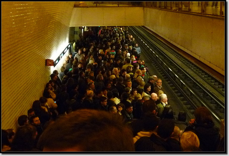 In der Metro-Station sah es natürlich nicht anders aus. Der Bahnsteig war hoffnungslos überfüllt. Toms empfindliche Laune wurde auf eine harte Probe gestellt und meine Mama lachte sich nur kaputt, das lag aber eher am Sekt und an der Sangria. Mir war nur warm!