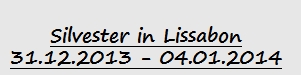 Für Silvester 2013/2014 hatten wir uns mal etwas anderes einfallen lassen und zwar eine Städtetour nach Lissabon. Jochen und Inka, mit denen wir die letzten Jahre Silvester immer zusammen gefeiert hatten, konnten leider nicht mitfahren. So wollten wir Zwei uns alleine auf die Reise machen.