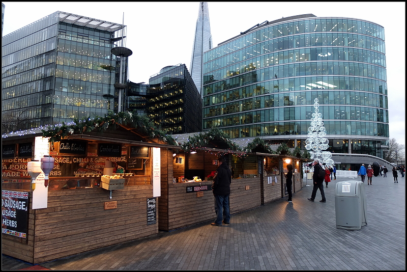 Mit einem Taxi ließen wir uns nach Greenwich chauffieren. Dort gab es einen kleinen überdachten Weihnachtsmarkt, der uns aber eher an einen Flohmarkt mit weihnachtlicher Deko erinnerte. Nach einem kurzen Rundgang düsten wir mit dem Taxi zurück zur Tower Bridge.