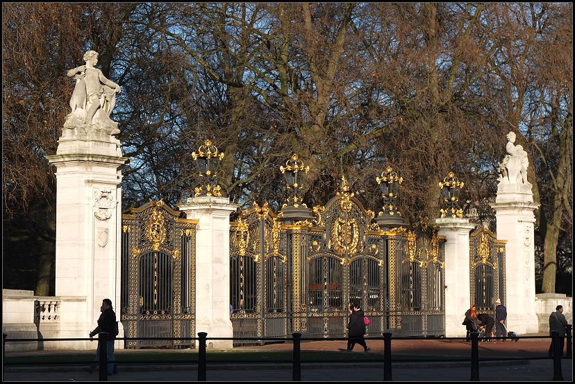 Die Queen war nicht anwesend, was uns der im Wind flatternde Union Jack verriet. Das war allerdings nicht immer so. Bis 1997 blieb der Fahnenmast bei Abwesenheit der Queen einfach leer und wenn sie vor Ort war, wehte die königliche Standarte. Seit dem Tod von Prinzessin Diana, wo der Union Jack auf Halbmast wehte, war und ist der Palast nie mehr flaggenlos.