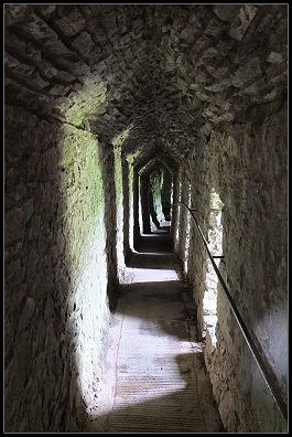 Zur Burg gehört auch eine Naturhöhle, die über einen schmalen rutschigen Gang zu erreichen ist. Ohne Taschen- lampe oder Handylicht ist man dort allerdings aufgeschmissen, es ist stockdunkel. Im Schneckentempo schlichen wir in der feuchten Kalksteinhöhle umher. Irgendwie unheimlich…