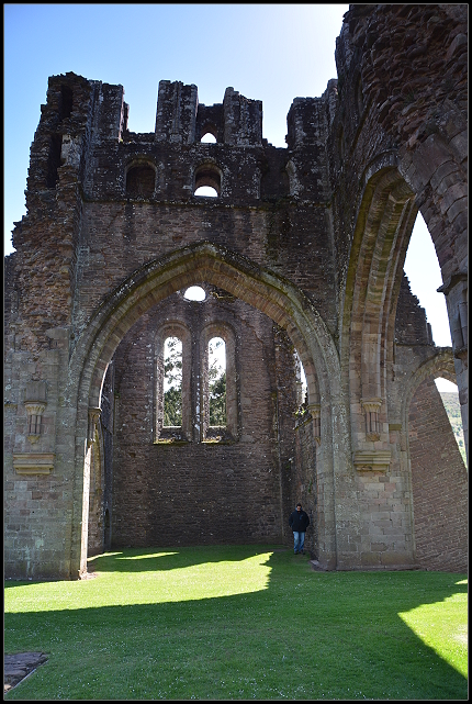 Über enge Straßen mit sehr hohen Hecken rechts und links fuhren wir zur Klosterruine Llanthony. Ganz alleine schlenderten wir über das Gelände.