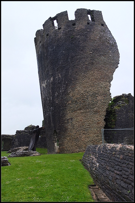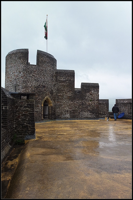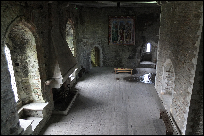 Vom 14. bis ins 18. Jahrhundert stand die Burg leer, verfiel und wurde zeitweise als Steinbruch für umliegende Häuser benutzt. Ab 1870 begann der 3. Marquess of Bute damit, die Burganlage zu restaurieren. Auch sein Sohn setzte die sorgfältige Rekonstruktion fort, bis die Burg schließlich 1950 vom 5. Marquess of Bute an den Staat übergeben wurde. Zum Glück gab es dort viele überdachte Bereiche und so konnten wir relativ trocken unseren Rundweg gehen.