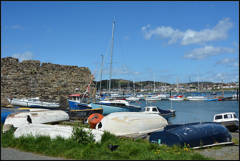 Gegen 12:30 Uhr kamen wir am Conwy Castle an, das auch Edward I erbauen ließ. Es war die erste Festung des eisernen Rings (Iron Ring), den er rund ums Land errichten ließ. So hatte er die Waliser unter Kontrolle und konnte jede Revolte schon im Keim ersticken. Zugleich setzte er sich mit dem Ring aus insgesamt neun Burgen ein Denkmal für die Ewigkeit. Die Burg ist sehr beeindruckend, allein schon die Ausmaße der Ringmauer mit ihren acht Wehrtürmen von je 12 Metern Durchmessern.
