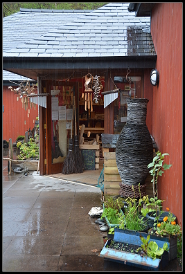 Auf der Weiterfahrt fing es heftig an zu regnen, in den Bergen hingen die Wolken fest. Wir legten einen Zwischenstopp ein und besuchten das Handwerkerdorf Corris Craft Centre. Dort gibt es ein nettes Café und viele kleine Häuschen mit einer Menge Handwerkszeug wie Holz-, Glas- und Töpferwaren. Aber es gibt auch einen Schokolade- und Feinkostladen.