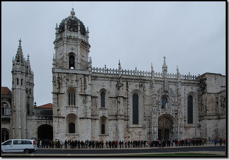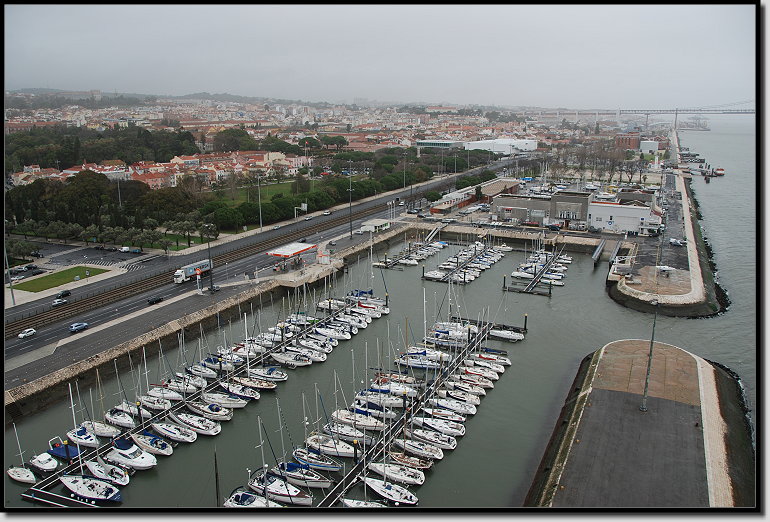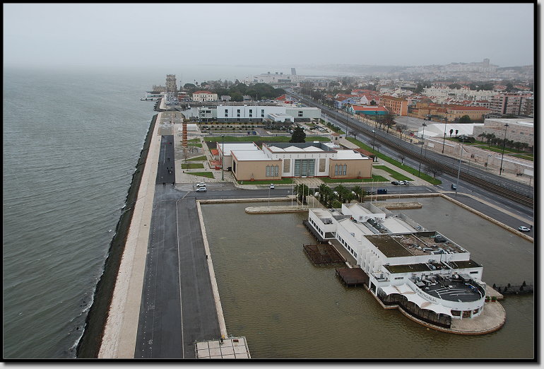 Weiter ging die Busfahrt bis raus nach Belém. Da der Regen aufgehört hatten, stiegen wir dort aus. Als erstes gingen wir zur mächtigen Hafenfestung Torre de Belém. Sie wurde 1515 – 1521 vom König Manuel I errichtet und stand ursprünglich mitten im Tejo. Im Zuge der Aufschüttung verlor sie aber im 19. Jahrhundert ihre Insellage.