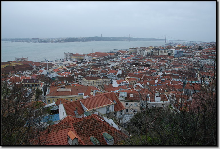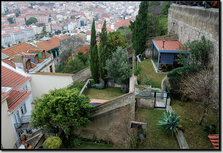 Nach einer Stunde hatten wir jeden Winkel des Castelos erkundet und zogen langsam weiter. Über die verwinkelten Wege und die steilen Treppen von Alfama wollten wir bergab laufen. Bevor wir aber hinab in die Gassen der Altstadt eintauchten, kamen wir am Miradouro das Portas do Sol vorbei. Wieder so ein schöner Aussichtspunkt.