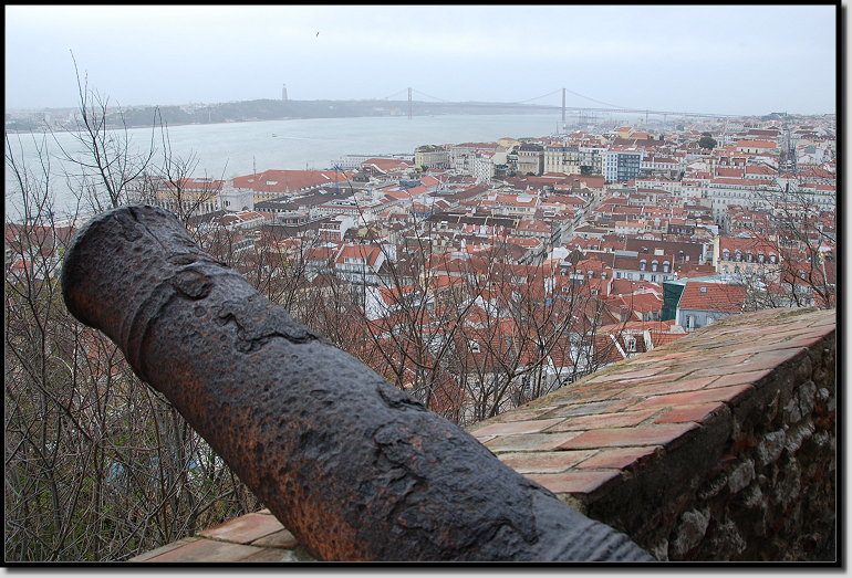 Gemütlich spazierten wir die Straße runter Richtung Tejo und überlegten, was wir als Nächstes machen sollten. Da sich das Wetter zu halten schien und es nicht nach Regen aussah, verschoben wir die Indooraktivitäten lieber auf den nächsten Tag. Wer weiß, wie das Wetter dann ist?! Wir wollten das „schöne“ Wetter lieber ausnutzen und beschlossen, mit einem Taxi zum Castelo de São Jorge hochzufahren. Das alte Möhrchen, was wir anhielten, hatte sogar schon 825.000 km auf dem Tacho stehen!! Unglaublich!