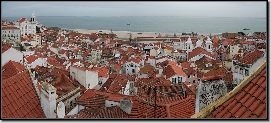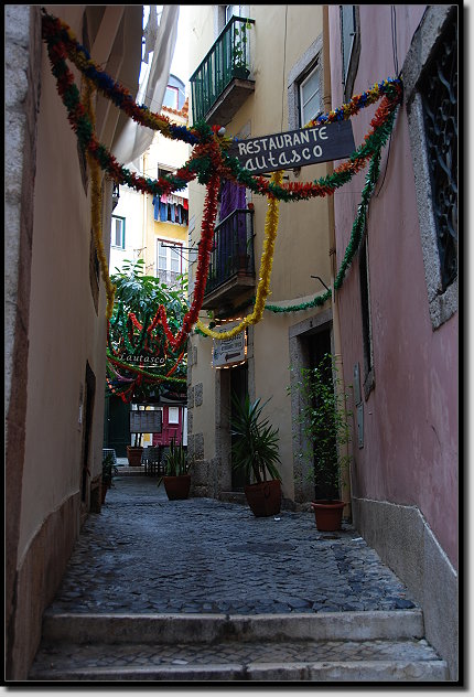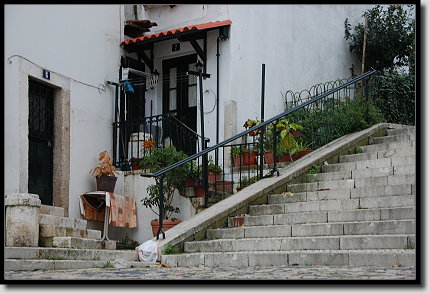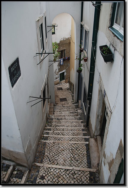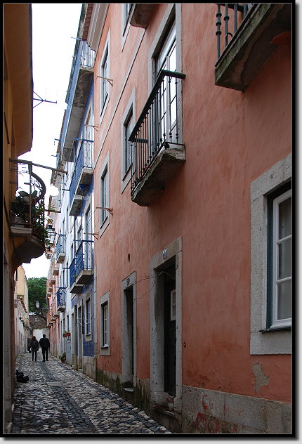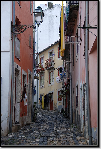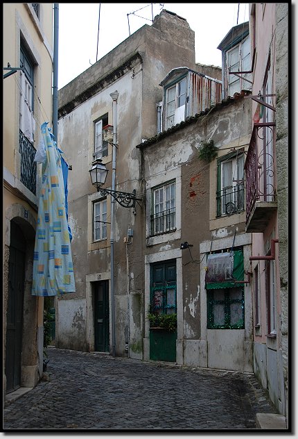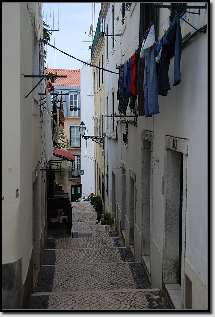 Dann ging es abwärts und nach wenigen Metern hatte uns das Gassenlabyrinth verschluckt. Im ältesten Stadtteil Lissabons scheint die Zeit still zu stehen. Volle Wäscheleinen baumelten an den Hauswänden, Frauen unterhielten sich auf Balkonen über die schmalen Gassen hinweg und an den alten Fassaden hingen Vogelkäfige. Hier und da gab es urige und gemütliche kleine Lokale und wir waren drauf und dran, uns in einem davon niederzulassen. Aber irgendwie zog es uns weiter, weiter und tiefer ins Gassenwirrwarr hinein.