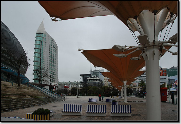 Auf der anderen Seite verließen wir das Shoppingcenter und gingen über das EXPO-Gelände zum Torre Vasco da Gama. Der an ein Segel erinnernde Turm wurde für die Weltausstellung gebaut und fand später aber keine Nachmieter. Heute soll er in ein Luxushotel umgebaut werden.