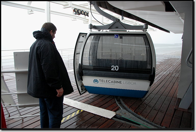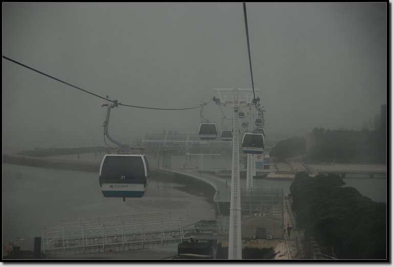 Leider fing es auf dem Weg dorthin mal wieder an zu regnen. So ein Scheißwetter aber auch! Schnell flüchteten wir in die Teleférico do Parque das Nações. Die Gondelbahn führt über ca. 1 km am Ufer des Tejo entlang zum Ozeanarium. Und da Tom ja Gondel- und Seilbahnfahrten hasst wie die Pest, war er entsprechend gut gelaunt. Mama und ich hatten unseren Spaß und genossen den Ausblick über das Gelände.