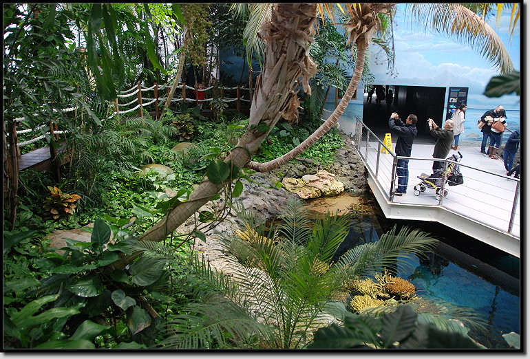 Zusätzlich zum Hauptbecken gibt es viele kleinere Aquarien mit z.B. Plattfischen, Quallen und Seedrachen. Und in den vier Ecken des Ozeanariums werden verschiedene Regionen nachgestellt. Der Nordatlantik mit Puffins, die Antarktis mit Pinguinen, der temperierte Pazifik mit einem Otterpärchen und der tropische indische Ozean mit vielen bunten Fischen und einem Korallenriff.