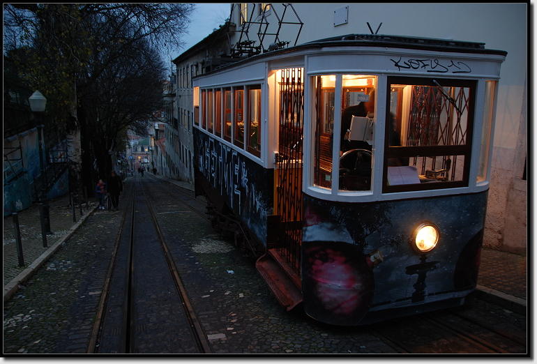 Den Berg runter fuhren wir dann mit der Standseilbahn Elevador da Glória. Dort unten zogen wieder dicke Rauchschwaden der Maronenstände umher.